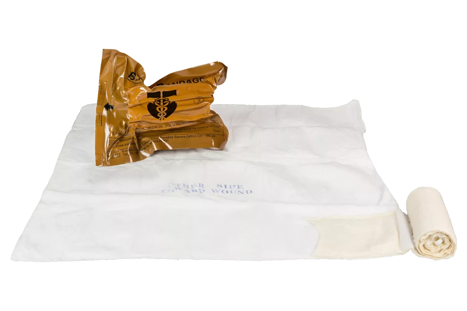 Förbandet har en behandlingsyta på 50 x 50 cm, men packas ihop till ungefär samma storlek som ett 10 cm stort traumaförband. Den stora icke-vidhäftande sårkompressen kan enkelt lindas runt lemmar och fästas med den medföljande elastiska lindningen. Den ger ett stort sterilt skydd för splittersår eller brännskador. Med ett så stort täckningsområde är förbandet tillräckligt stort för att täcka hela ryggen eller bröstet på de flesta skadade.