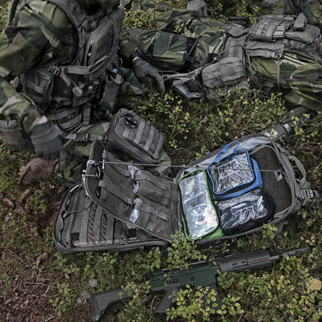 • Ryggsäcken kan skräddarsys av användaren för sjukvårdsutrustning eller radio.