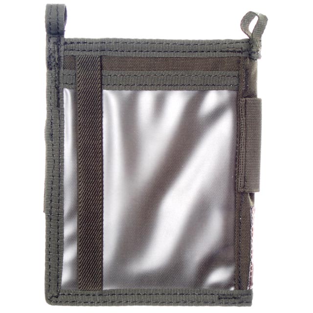 Plastficka på in- och utsida där du kan förvara t.ex. ordermallar och minnesanteckningar. Fäste för penna på in- och utsida. Öppnas tyst med ett elastiskt band. Fästen på ovansida för snöre, så du kan bära anteckningsfodralet runt halsen och alltid nära till hands om så önskas.