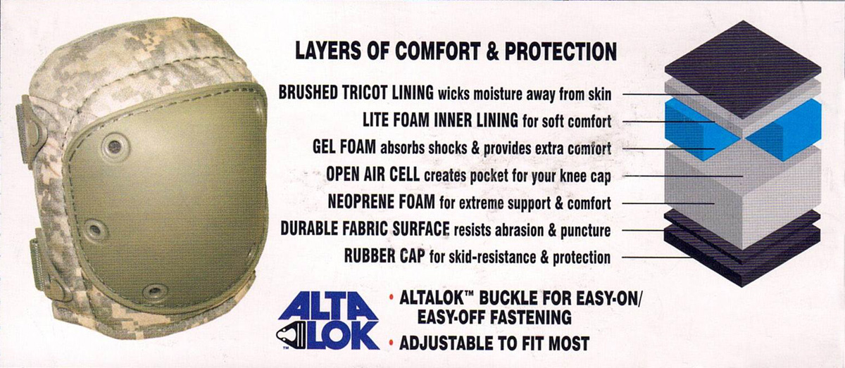 ALTA professionella knäskydd skyddar dina knän väl mot skador och smuts, samtidigt som de är mycket bekväma att bära. Rekommenderas för militär användning, perfekta även för jakt och skytte.