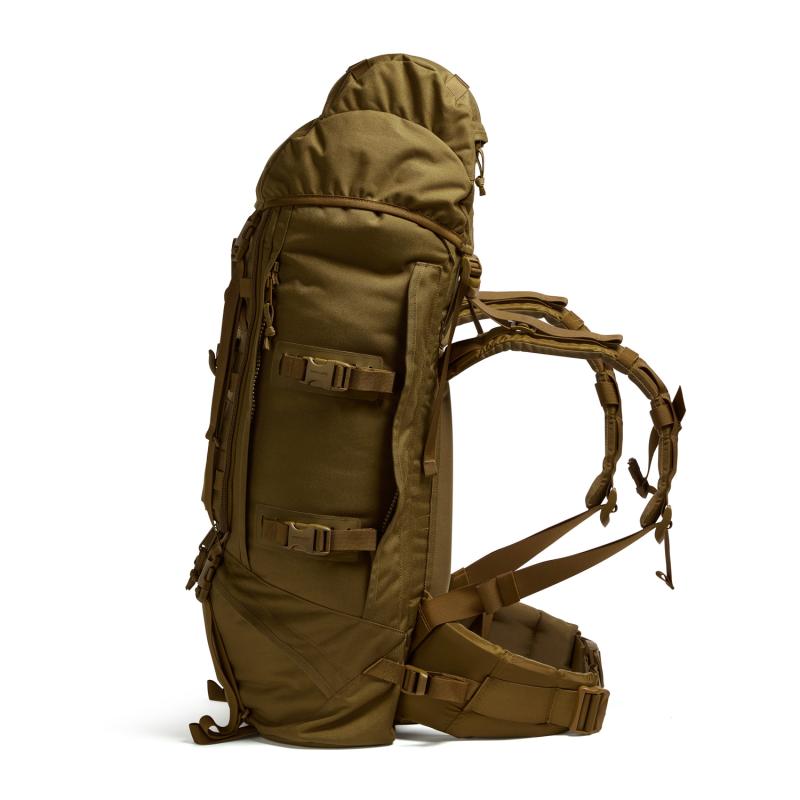 Bärsystemet med 40 mm breda remmar är försett med toppstramare och har stoppade bärremmar samt att den är naturligtvis även försedd med bröstrem. Bärsystemet är fast och finns därför för olika kroppslängder. Den har ett rejält stoppat avbärarbälte, detta dras åt genom att dra två remmar framåt. Ryggsäcken har en invändig aluminiumram för bästa stabilitet.
