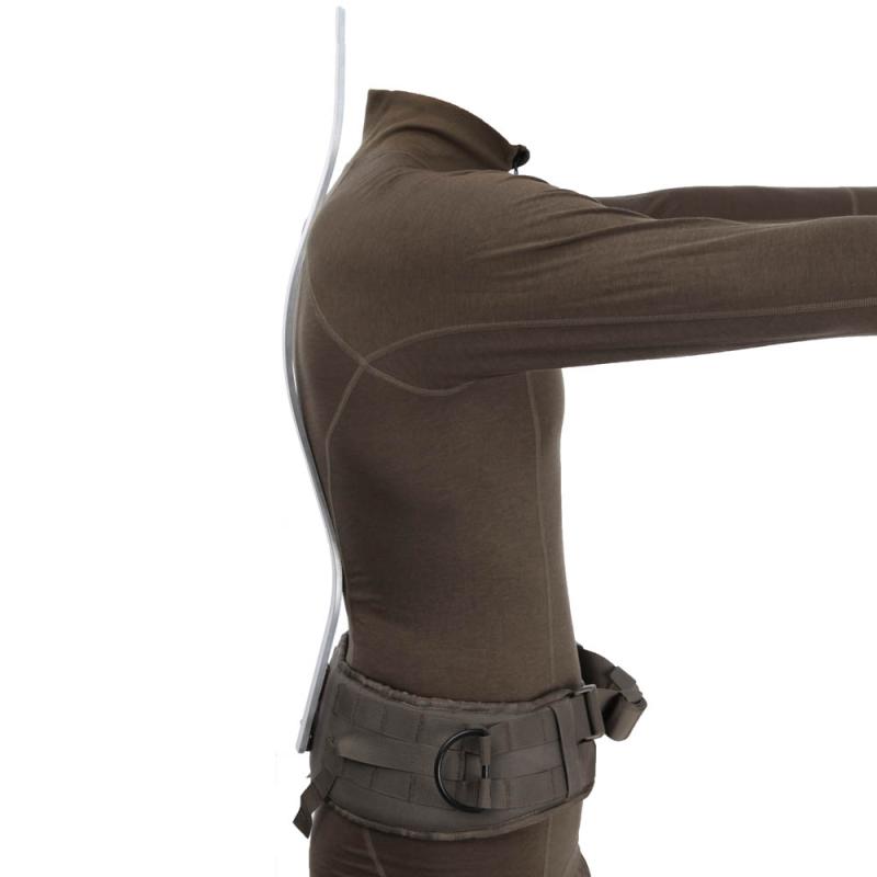 • Höftbälte med plastfolie och fast foam för komfort och stabilitet. Höftbältet är mittmonterat, vilket möjliggör fri rörlighet. Fästpunkter för pulka på höftbältet med O-ringar av stål så att en pulka kan fästas däri.