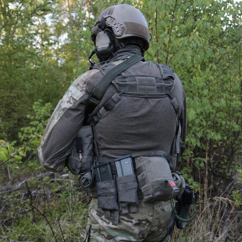 En ficka med låg profil med mångsidig användning för olika sorters utrustning som kan bäras både på byxbälte eller med tajt bärande på din utrustningsväst.