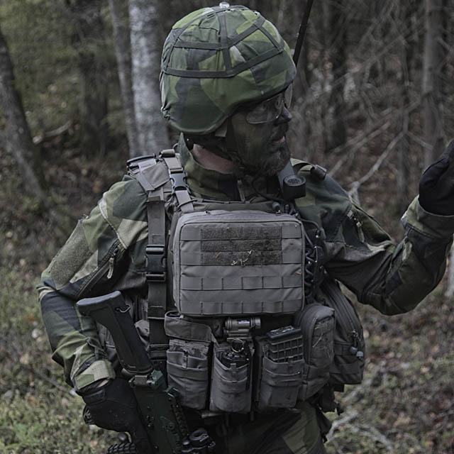 Två lägre utvändiga fack för pistol- eller K-pist magasin, pepparspray eller annan mindre utrustning.